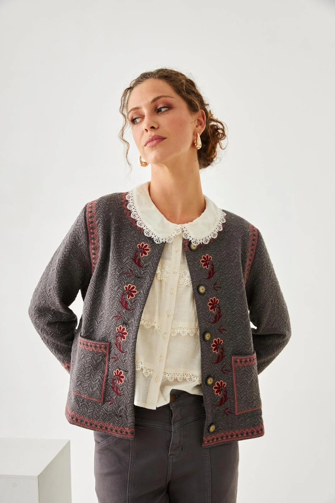 CHAQUETA CRUZADA TERCIOPELO PALMERITAS 99,00 € PANTALÓN JOGGING TERCIOPELO PALMERITAS 79,00 € JERSEY JACQUARD GEOMÉTRICO - PINK 69,00 € JERSEY BAJO FLECOS - CAMEL 69,00 € PANTALÓN PUNTO FLECOS - CAMEL 79,00 € ABRIGO DE CUADROS CON SOLAPAS – BEIGE 119,00 € CHAQUETA ROMÁNTICA BORDADO - GREY 129,00 € FALDA ASIMÉTRICA FLORES VOLANTE - CAMEL 79,00 € VESTIDO FLORAL CUELLO MAO - BURGUNDY 89,00 € VESTIDO CRUZADO FLORAL - CAMEL 89,00 € FALDA TERCIOPELO VOLANTE PALMERITAS - VIOLET 89,00 € JERSEY MANGAS BALLOON FLORES BORDADAS - GREEN 79,00 € JERSEY FLORES BORDADAS CONSTRASTE - IVORY 69,00 € JERSEY PUNTO CANALÉ FLORES - PINK 72,00 €